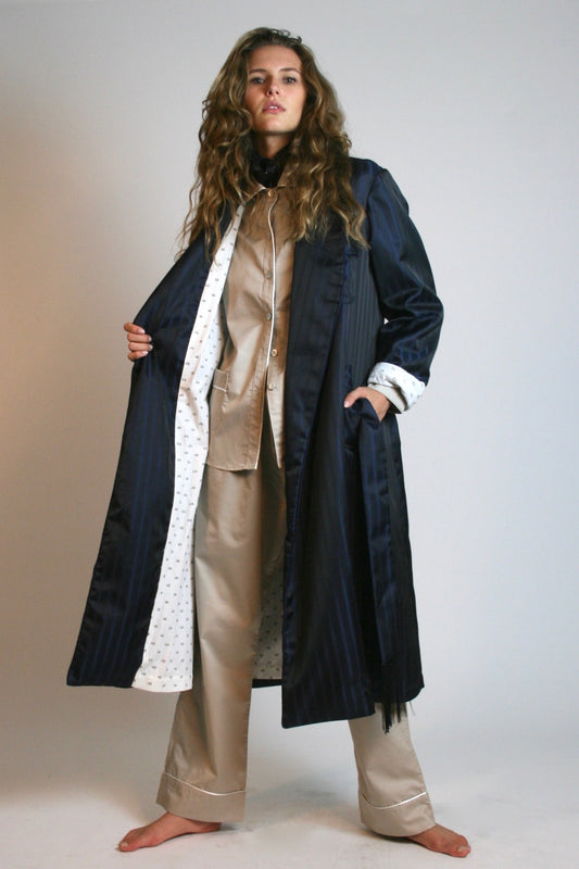 Our small batch collection of north american classics is crafted by local artisans using hand selected silks, cottons, and linens. We finish with french seams, pure trims and shell buttons.