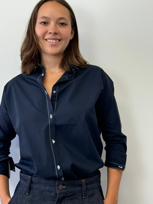 NAVY BLUE COTTON SHIRT CONTRAST STITCH