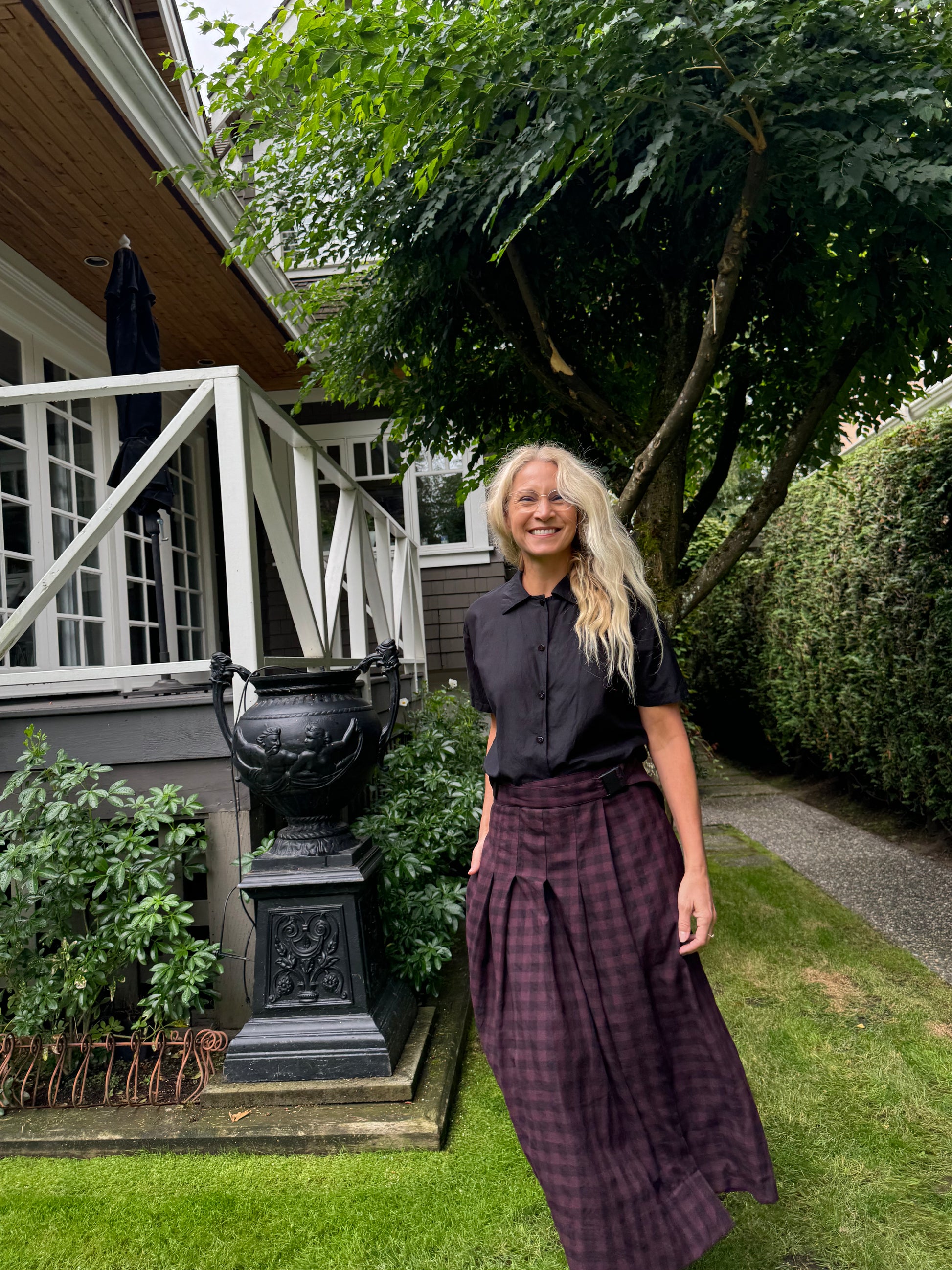Black cotton shirt in voile is a masterpiece of airy elegance. Made with lightweight cotton silk, providing both comfort and easy style will make this a core piece in your wardrobe. Creates an ethereal barely-there feel. Crafted with utmost care from up-cycled fabric sourced in the heart of downtown Los Angeles. We are committed to fair wage practices, ensuring that every step of its creation is a testament to responsible and sustainable craftsmanship. Shown here with the matching short sleeve shirt.